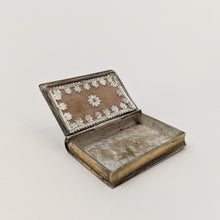 Although it is unmarked, this piece tests as solid silver. I am unsure of its original intended use, but it is the size of a pillbox or small snuff box.