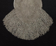 It is still strong and usable with care. The frame and handle are silver tone and the beads are cut steel.
