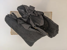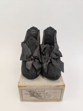 These sweet little burial slippers come in the original box. They were designed to easily slip onto the feet of a body for burial.