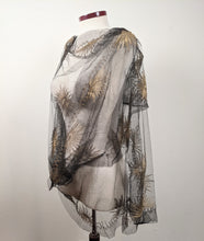 This is such a versatile piece and can be worn as a scarf, shawl, or even arranged to be worn as a blouse. The net lace is sheer and lightweight.