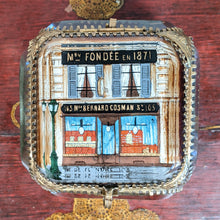 One of the most beautiful jewelry caskets I've ever come across! It is incredibly unique with the charming painting of the shop front on the top!