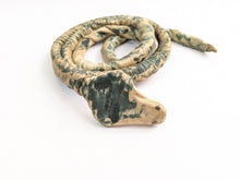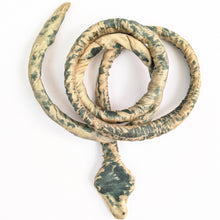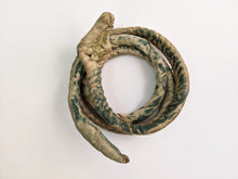An interesting antique handmade piece - a snake made from a coiled rope, wrapped in silk, hand painted, and hand sewn.