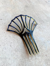 c. 1920s-1930s, gorgeous black celluloid hair comb with sparkling blue rhinestones.