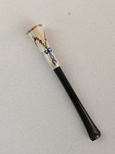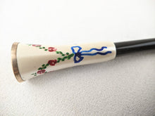 This lovely Art Deco era cigarette holder features a beautiful enamel design with hand painted floral garlands and bows and a gold filled tip.