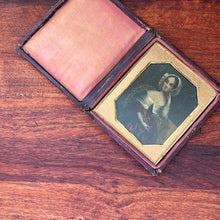 Lovely condition overall with minor age-related wear, some crackling to the surface of the painting, and wear to the leather case. Case doesn't close very easily.