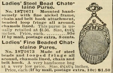 This bag was made to be attached to the belt and worn as a functional fashion accessory. This particular style and shape was very popular around the turn of the century, and I was able to find a very similar one (although without the snakes) in a Sears catalog dating from 1900. I included a screenshot image of that in the photos of this listing.