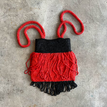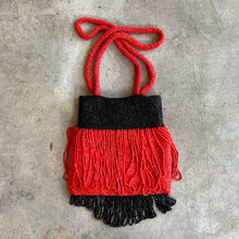 c. 1920s-30s black and orange glass beaded purse with silk lining.