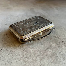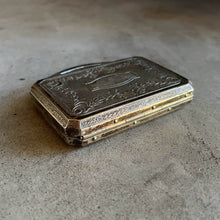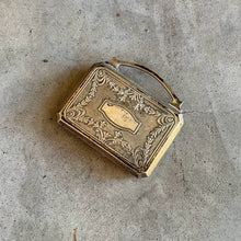 Fabulous silver plated makeup compact in the shape of a suitcase circa 1920s-1930s. It is deadstock, unused, with the paper still covering the powders.