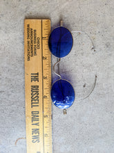 These gorgeous cobalt blue tinted eyeglasses date from the late 19th century to early 20th century. They have wire frames that are flexible to fit a range of sizes.