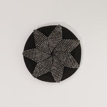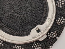 Beautiful Tam O' Shanter coin purse with a Greek coin motif. The top is silver plated and the woven bag is embellished with cut steel beads in a beautiful star design.