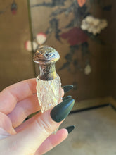 There is no stopper but there is an original piece of cotton lining the lid. Would be lovely worn on a chain (a sturdy one due to the weight of the bottle!).