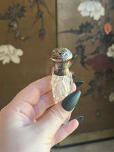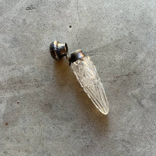 Gorgeous cut crystal chatelaine perfume bottle with sterling silver top set with a red gemstone, circa late 19th century to early 20th century.