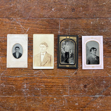 Grouping of four 19th century photographs, possibly of the same person. Three are tintypes and one is mounted on a card.