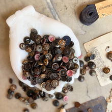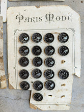 The buttons are in mostly good condition, though a bit dusty and some have obvious patina from age. Could be cleaned or left as is. Most of the cards are in very poor condition and falling apart. I've done my best to keep them intact, but they crumble when handled.