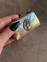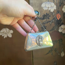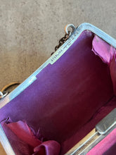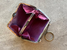 Adorable sterling silver chatelaine purse with purple silk lining circa 1910s.