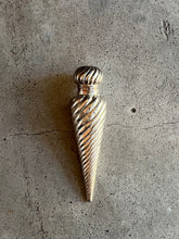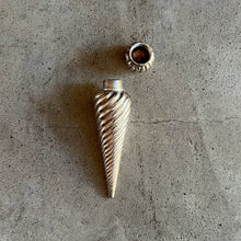 Screw top, cork lined lid. Shape reminds me of a seashell!