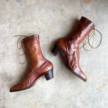 Beautiful brown lace up boots with pointed toes and Cuban heels circa 1910s.