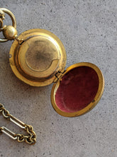 It hangs on an 18k gold filled long guard chain with a spring ring on one end and a dog clip on the other. (Marked 18CT GF)