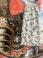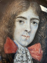 A wonderfully detailed, hand painted portrait miniature of a gentleman who appears quite important. Circa late 1600s- early 1700s.