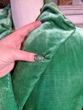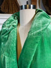 Absolutely incredible green silk velvet coat circa 1920s with a cream silk lining. Not only is the color on this piece totally unreal, vibrant, and gorgeous, but the details are also so fabulous.