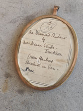 The frame is made of a gold plated brass. The back has a paper with a handwritten description.