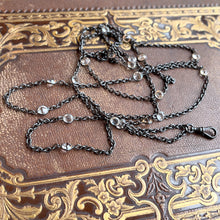 Scarce gunmetal long guard chain circa late 19th to early 20th century with faceted paste (glass) stones.