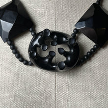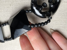 Gorgeous Whitby jet statement necklace with chunky faceted beads, and a large unique centerpiece.