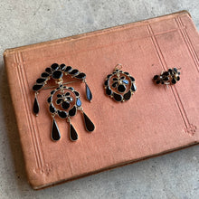 A rare and beautiful full parure of 14k gold, onyx, and seed pearl jewelry circa 1870s-1880s! It is not often you find a set like this still together.