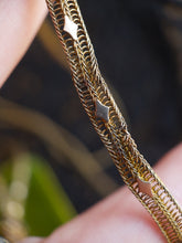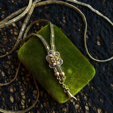 Lovely condition overall with some minor age-related wear and patina. The chain itself is made up of very fine gold wire woven together. There is some darkening and patina to parts of it. Also there are a few spots on the chain that are slightly bent or with a tiny wire end exposed. This does not cause an issue other than a minor catch when moving the slide. However, if handled with care, it is not a problem.