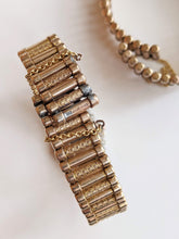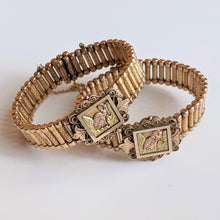 Beautiful pair of gold filled bracelets circa 1880s. A unique stretch design that expands to fit a range of wrist sizes.