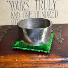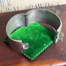 Hinged cuff with push button clasp. Unmarked but tested as a lower content silver, around .800 silver.