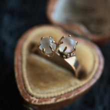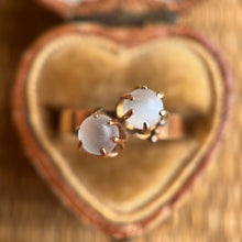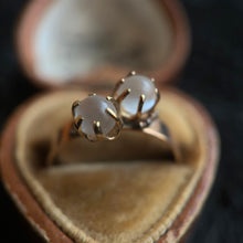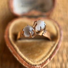 This wonderful ring circa the turn of the century, 1890s-1900s, features two moonstone orbs set in 10k rosy gold.