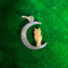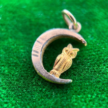 An owl and a crescent moon, two of my favorite motifs in antique jewelry! This sweet little gold front charm was converted from a stick pin, circa 1890s-1900s. The bale is 14k gold.