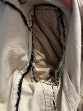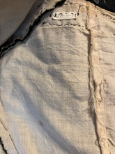 Lovely condition overall for her age and wearable with care. Some small mends on the hem at the back of the skirt, likely wear a heel caught and made a tear. Missing one button and some buttons mismatched. There is also some slight wear and tear around the buttons from use.