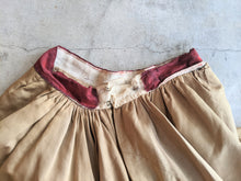 Skirt is lined with a very loose weave muslin. Hook and eye closures at the center back. Waist seems to have been extended at some point and is much larger than bodice waist.