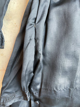 Best for study or display, but overall good condition for its age with some notable flaws. The cream silk bodice lining is stained and torn. Missing a few snaps and hook/bar closures. A few small holes and loose seams.