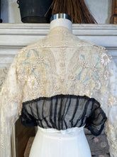 This exceptional lace blouse circa 19-teens has so many amazing details. The pastels and floral motifs are so sweet and delicate.