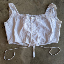 A beautiful, transitional piece of lingerie dating from the Edwardian era, likely the late 1900s to early 1910s. One of the first "brassieres," a precursor to the modern bra.