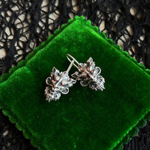 Incredible, detailed "Green Man" earrings that have been converted from a pair of c. 1900s cufflinks. He has fabulous little red glass cabochon eyes.