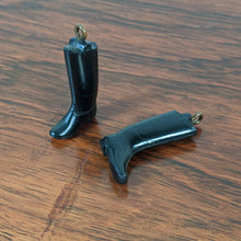 Fabulous compressed coal boot charms circa 1920s-1930s. These would have likely been purchased as souvenirs from a mining town and used as watch fobs.