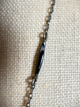 A one of a kind sterling silver Art Deco watch c. 1920s featuring a lovely guilloche enamel bee on the back. It hangs on a long sterling silver chain with black enameled links.