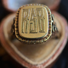 A really wonderful Art Deco era 14k gold engraved ring with a signet bearing the letters RSB in a very cool font!