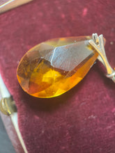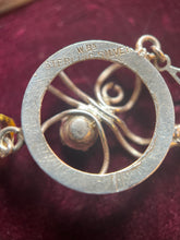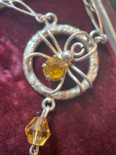 A very rare and lovely sterling silver and amber glass necklace in sterling silver featuring a spider in the center of an engraved circle.
