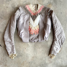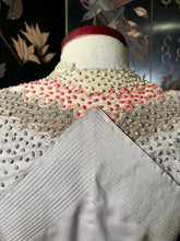Lovely condition overall with some minor age-related wear and flaws. Some fraying around the collar. The coral silk is deteriorating. A couple of small holes on the back. Some small marks/stains. Quite sturdy and wearable with care.
