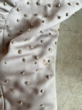 At the caps of each sleeve, there is a kind of "vent" (for lack of a better term, which I'm sure exists but is escaping me). I have never seen anything quite like it before. It was made this way, and is not a flaw. I believe it would make for more ease of movement with the sleeves being as fitted as they are, and it is also a unique detail that looks quite interesting and stylish.