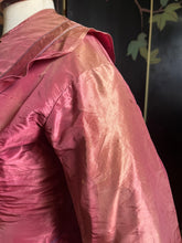 Really fabulous pink silk bodice with purple trim circa late 1860s to very early 1870s.