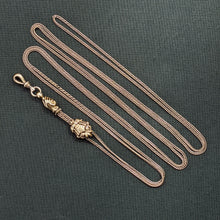 What I love about this chain is the incredibly unique figural hand motif depicting a fist holding onto the bail, which is an old style hinged swivel clip. The end of the "bail" curves around the back of the hand, giving it an almost "living" effect, like a wriggling tail.