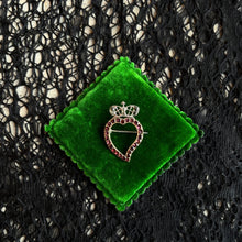 Gorgeous Georgian era witch's heart brooch in silver with flat cut garnets and paste stones. Circa early 19th century, 1800-1840.