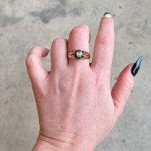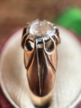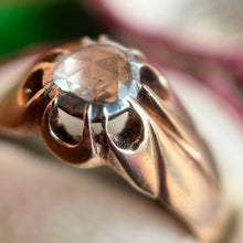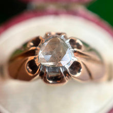 This beautiful 14k gold ring features a stunning foil backed rose cut diamond as its centerpiece.
