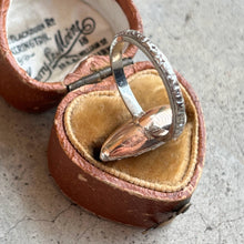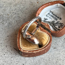 This piece combines a beautiful Georgian era element, likely from an earring, fashioned in silver and 9k gold circa early 19th century, with a 14k white gold band circa early 20th century.